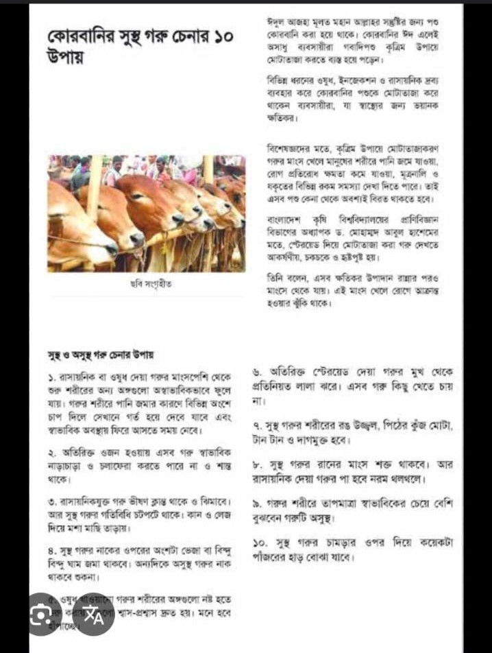 কোরবানির সুস্থ গরু চেনার ১০ উপায়